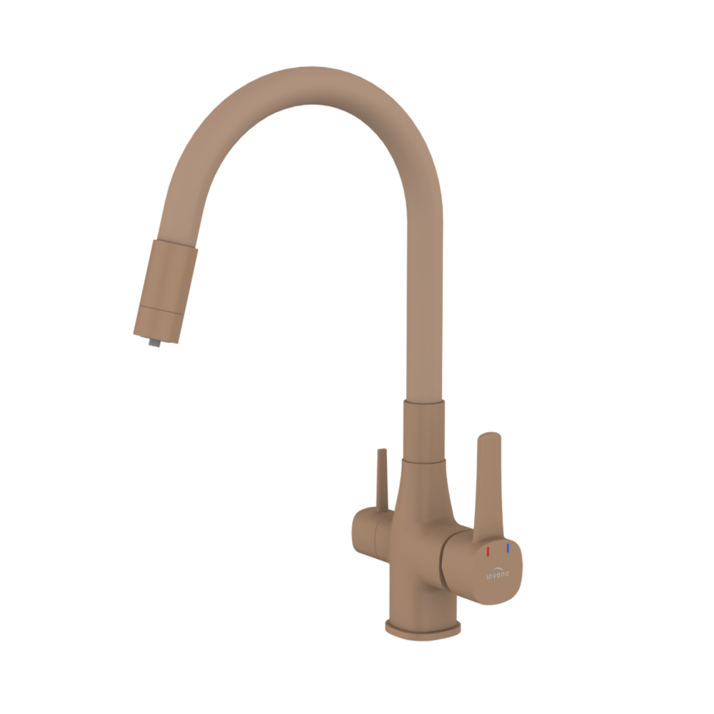 Шукаєте ідеальний бежевий змішувач для кухні? Представляємо кухонний змішувач з фільтром Invena GLAMOUR BZ-02-F03-V – це елегантне рішення 2 в 1, що поєднує вишуканий дизайн та функцію очищення води. Тепер ви можете отримувати чисту питну воду з крана без зайвих зусиль, забувши про пляшки та глечики! Цей змішувач Invena GLAMOUR стане справжньою окрасою вашого дому.