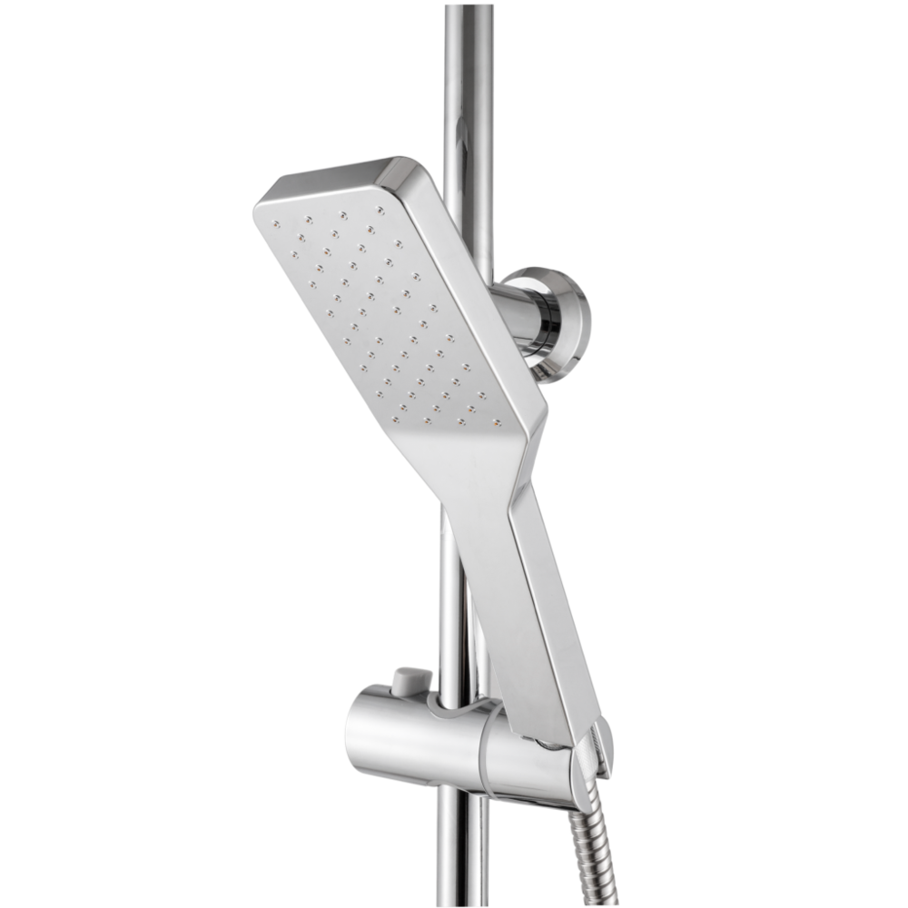 Верхній душ: Прямокутна лійка розміром 25 х 17 см виготовлена з легкого та міцного ABS-пластику. Вона створює приємний розсіяний потік води, що імітує тропічний дощ.